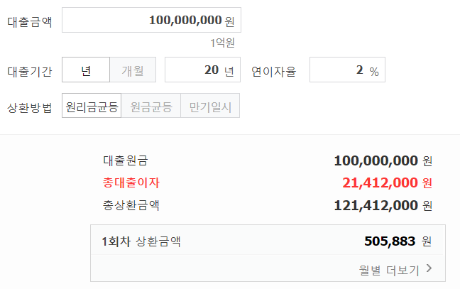 반면 2%인 경우에는 월 50만 5천원을 내야 하죠.